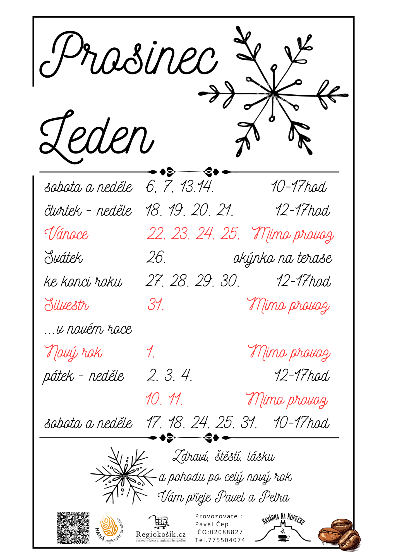 v dodatku naleznete provoz ve svátcích a informace, kdy je kavárna mimo provoz.